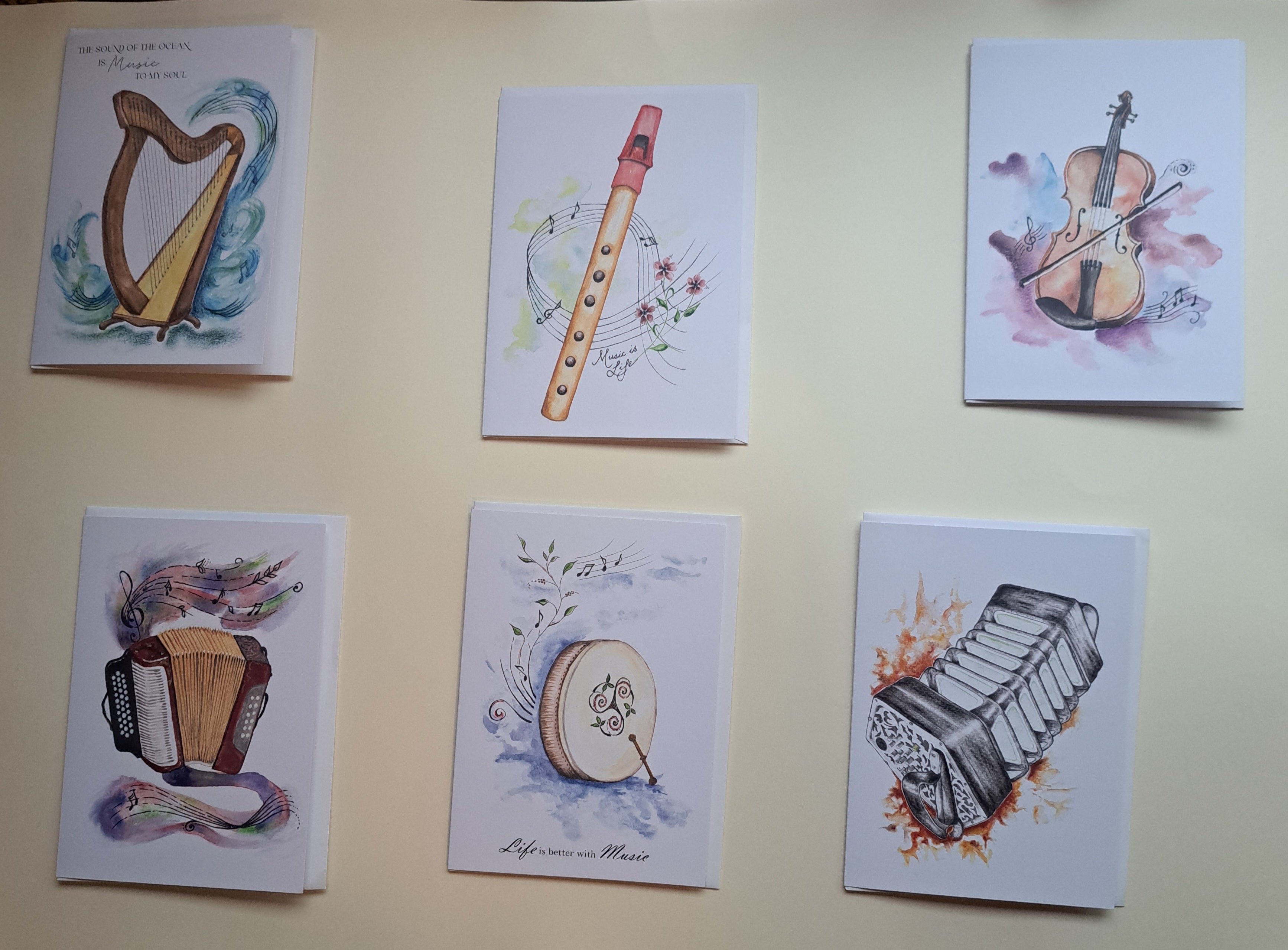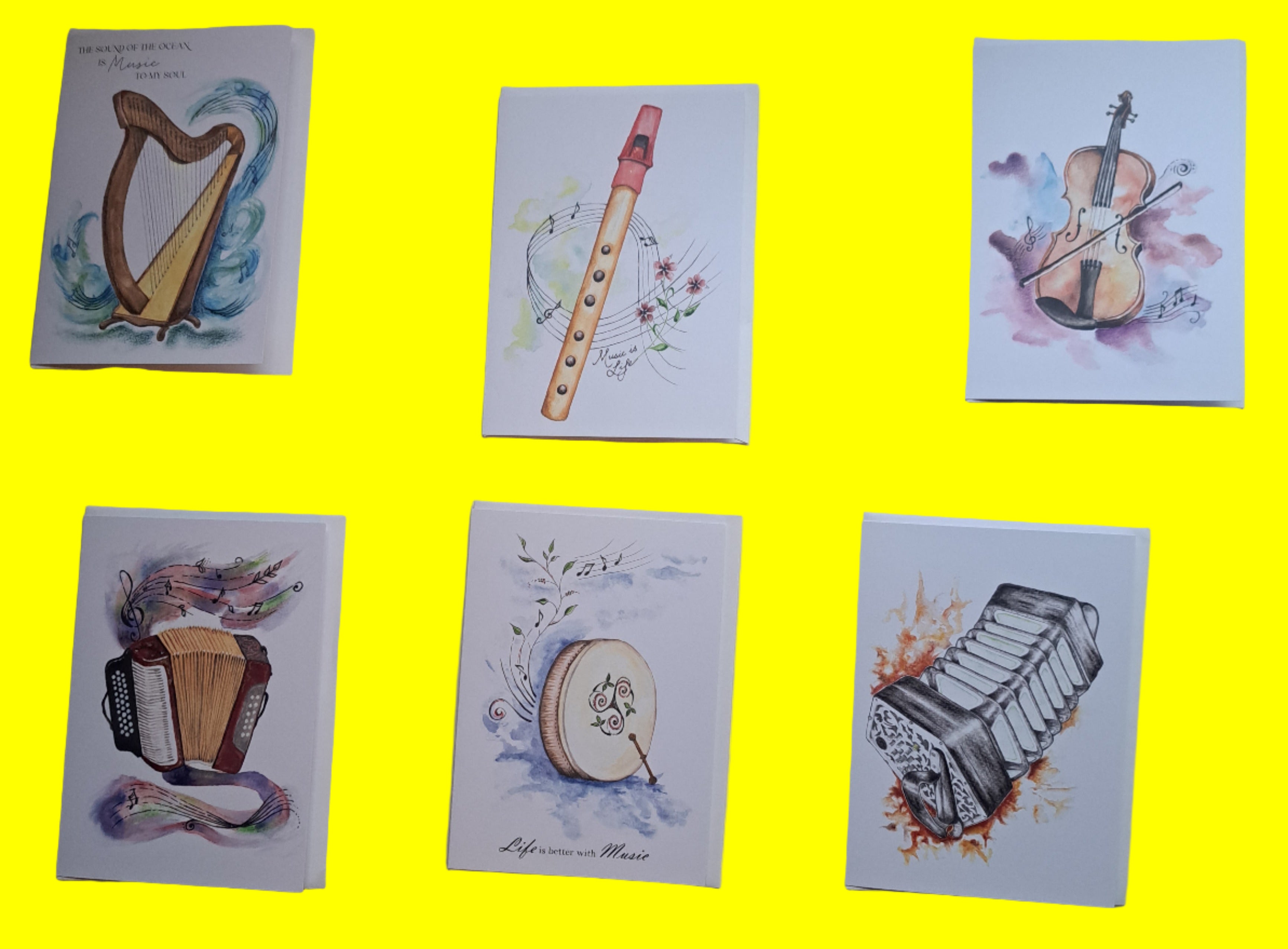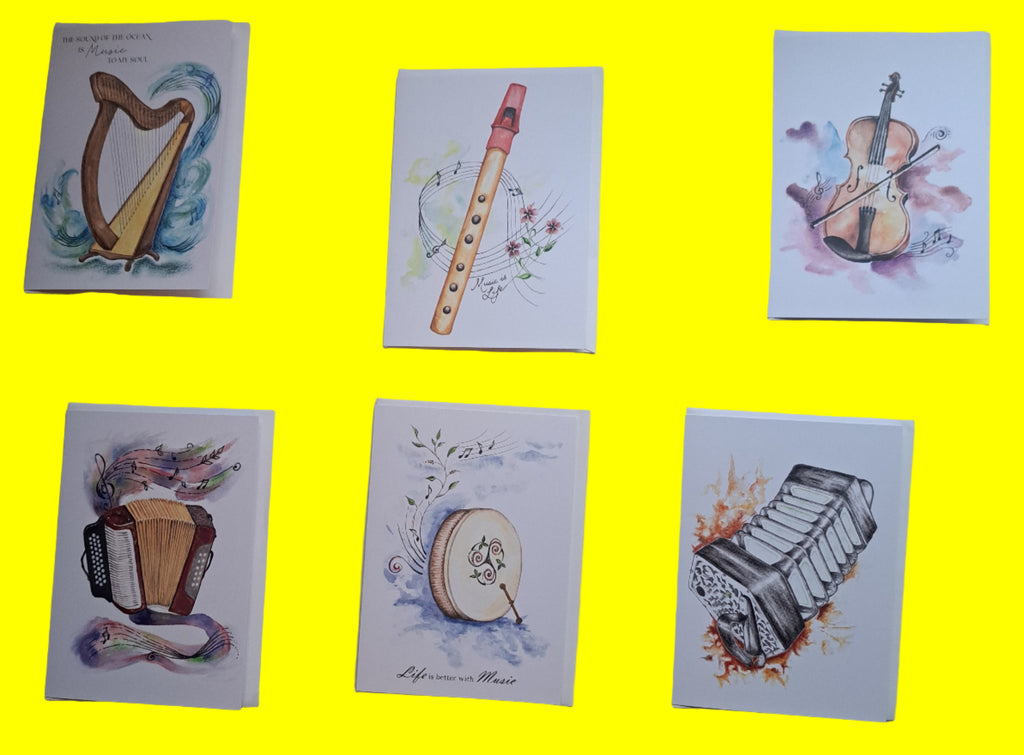 (Music cards, with envelope, made in Miltown Malbay by Maeve with blank inside)